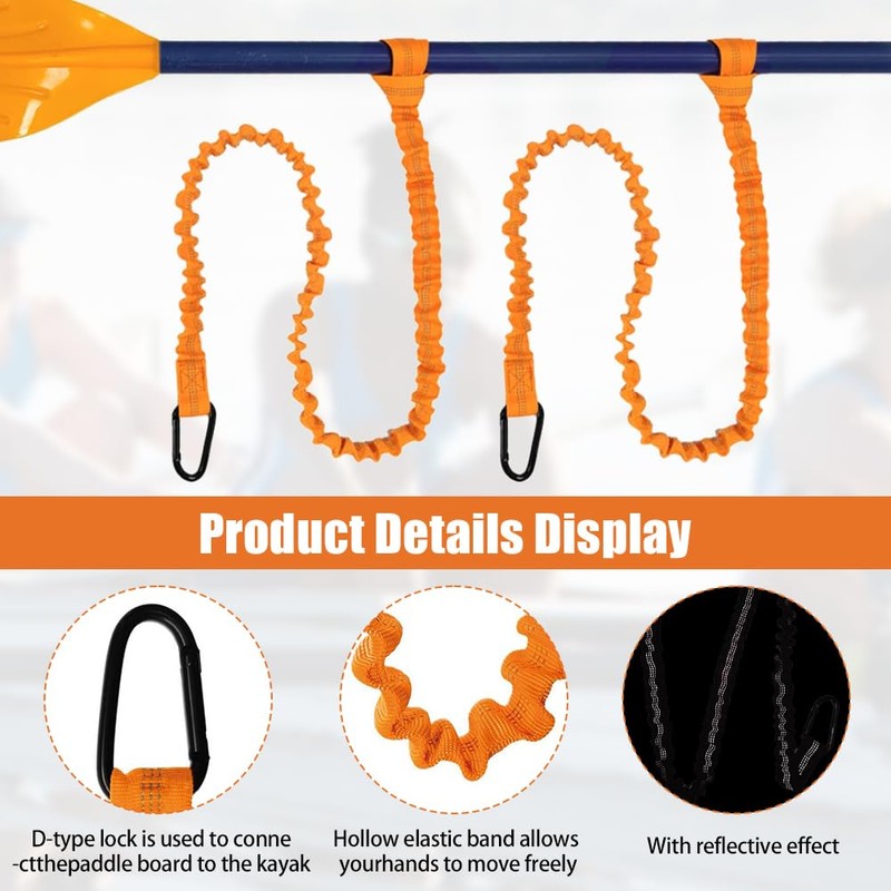 - 【Einfache Handhabung】Befestigen Sie einfach ein Ende der elastischen Kajakleine am Paddel oder der Rute, und lösen Sie es mithilfe des Schiebeschalters. Das andere Ende wird an Ihrer Schwimmweste oder dem Boot befestigt, was eine unkomplizierte Anwendung ermöglicht.