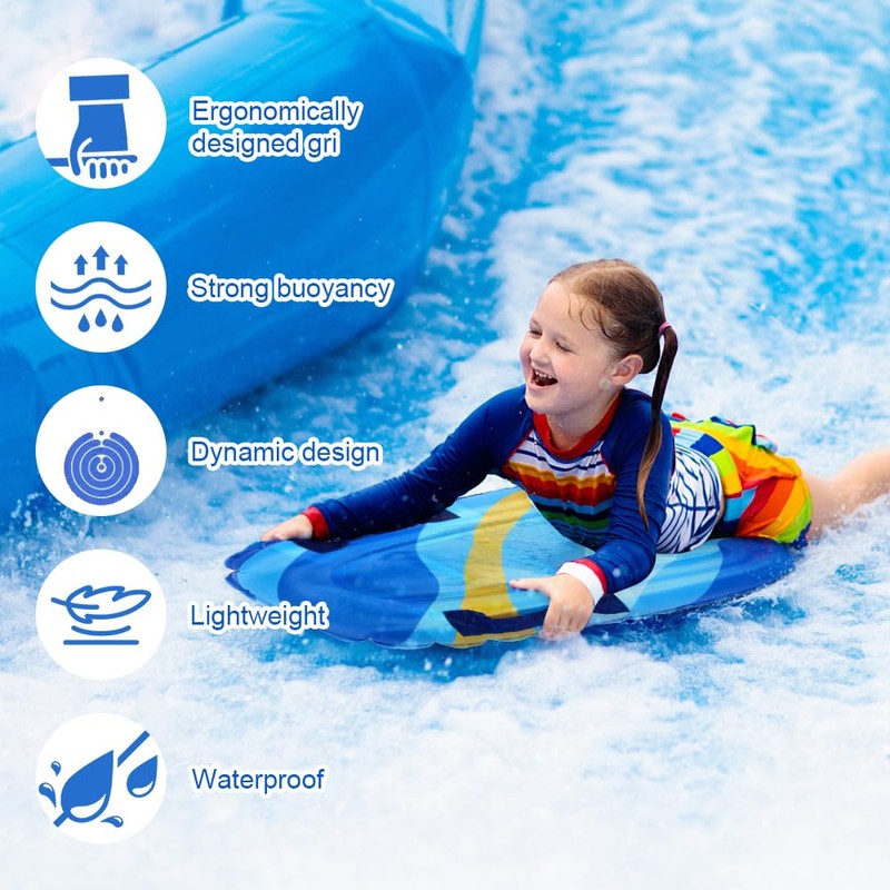 • Versatile: ideal for use in the pool or on the beach, the inflatable bodyboard is the perfect companion for summer water activities. For swimming beginners, this inflatable bodyboard is the ideal training aid for warming up in the water.