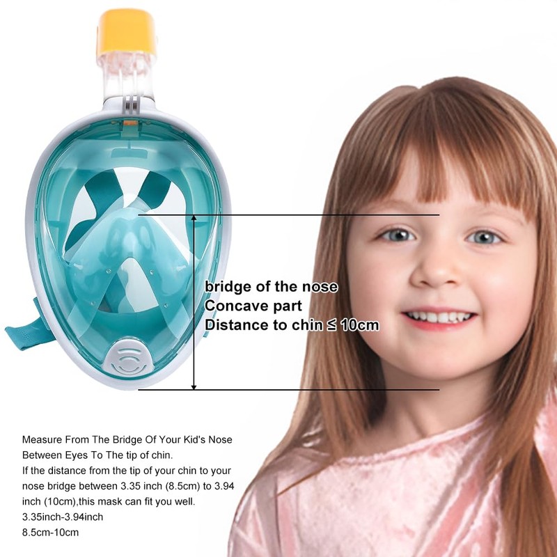 - 180° PANORAMIC PANORAMA: The mask features clear flat lenses on the full face of the Kids Snorkelling Mask to avoid distortion of the field of view and eliminate underwater turbidity. The full face design allows you to enjoy a 180° panoramic view underwater.