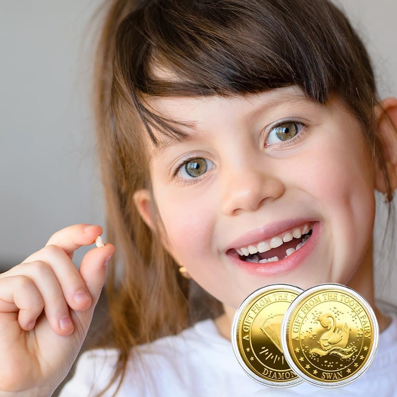 - Childhood Memorial Adorable tooth fairy coins as a reward for falling milk teeth, to collect and store while your children's wobble teeth fall out to overcome the fear of tooth loss.