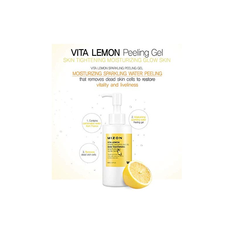 MIZON Vita Lemon Peeling Gel, Lemon Peel Oil and Sparkling Water, Skin Tightening, Moisturizing, Skin Vitality, Removes Dead Skin Cells (150g)