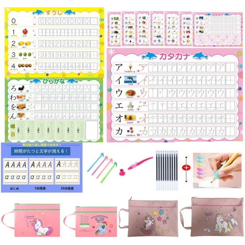 - (Complete Practice Set) - Includes 8 and 2 each of the flat names, temporary name and number practice books, 1 pen and 10 pen refill pens, and 10 pen refillers to meet the demands of children in general. Useful for Japanese learning