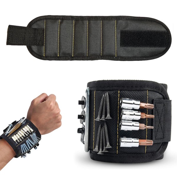 - Powerful Magnetic Hold: Equipped with 10 strong magnets, this wristband securely holds screws, nails, bolts, washers, and drill bits, keeping essentials within reach and saving you time. No more digging through toolboxes or fumbling with small parts