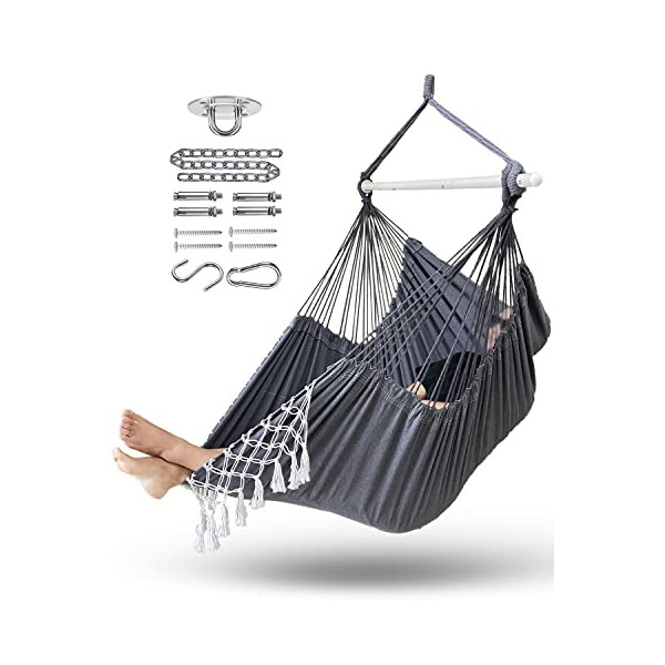 MIZTLI Hammock Chair Hanging Chair Swing Chair XXL Large Macrame Swing - Max 500 Lbs-All Hanging Kit Included