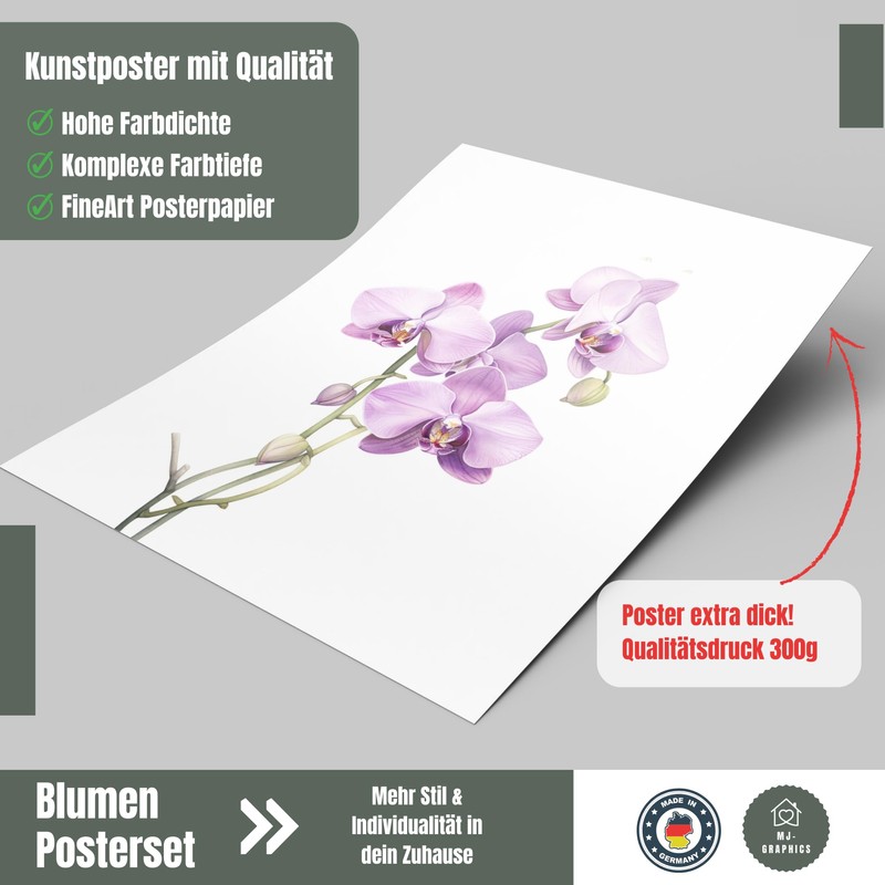MJ-Graphics Poster Set Flowers for Kitchen and Living Room 4 Wall Pictures DIN A4 Extra Thick Poster Paper Plant Motif Pictures without Frame