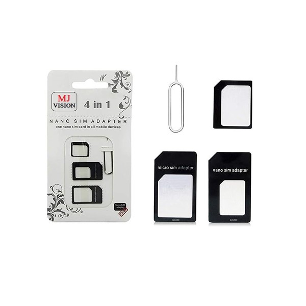 MJ Vision 4 in 1 SIM Tool kit | Convert Nano SIM to Micro SIM | SIM Card Adapter Kit with SIM Ejector Pin | Extractor for Smartphone | Converter with Steel Tray Eject Pin for Smartphone