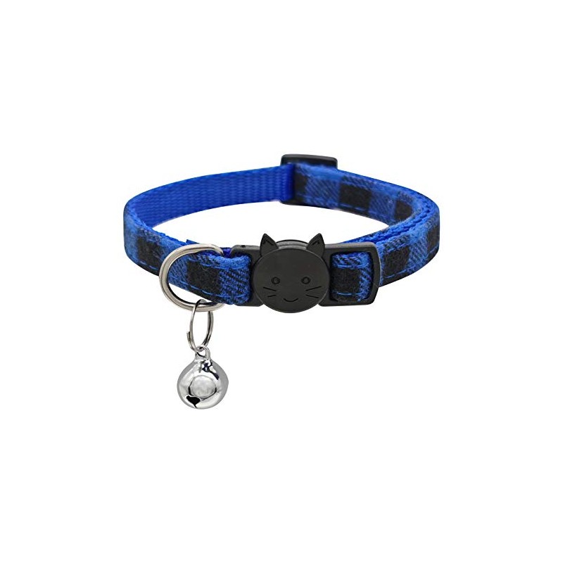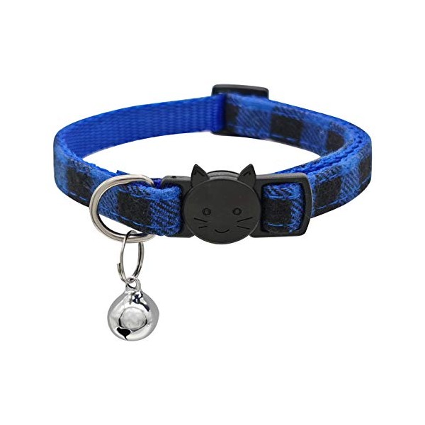 MJIYA Cat Collar with Bell, Breakaway Grid Collar with Plastic Buckle, Light Adjustable, Nylon, Kitty Collars (Blue, M)