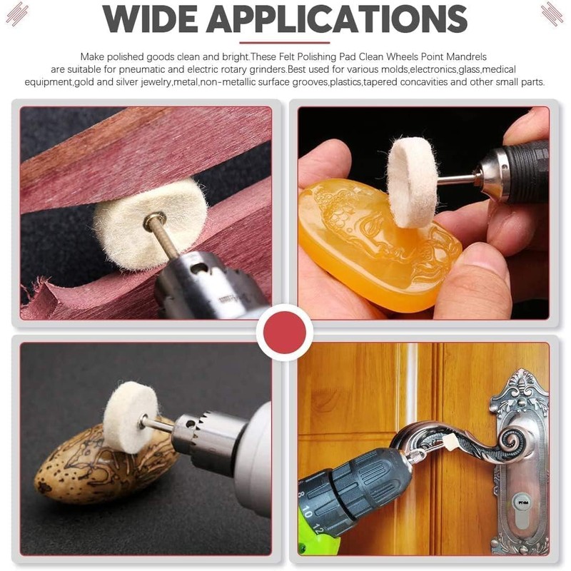 Materials: The polishing heads are crafted from compressed wool felt for superior polishing, paired with durable metal shanks for stable handling.