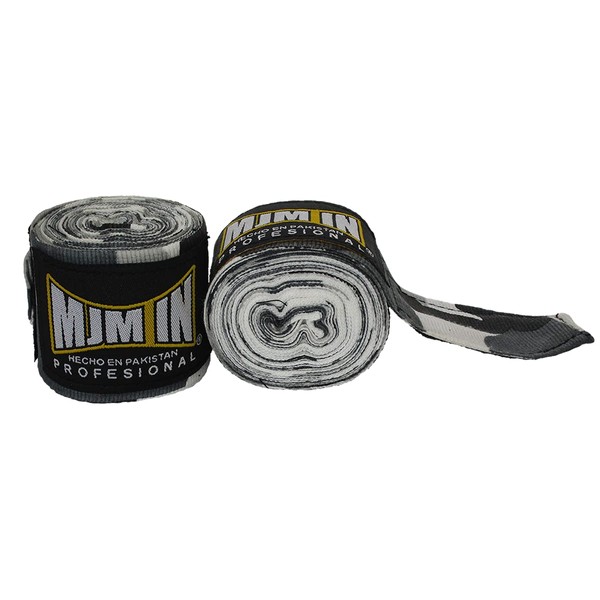 MJM IN Vendas para Boxeo Profesional Algodon Semi elasticas 4.5 MTS de Largo (Camuflaje Negro)