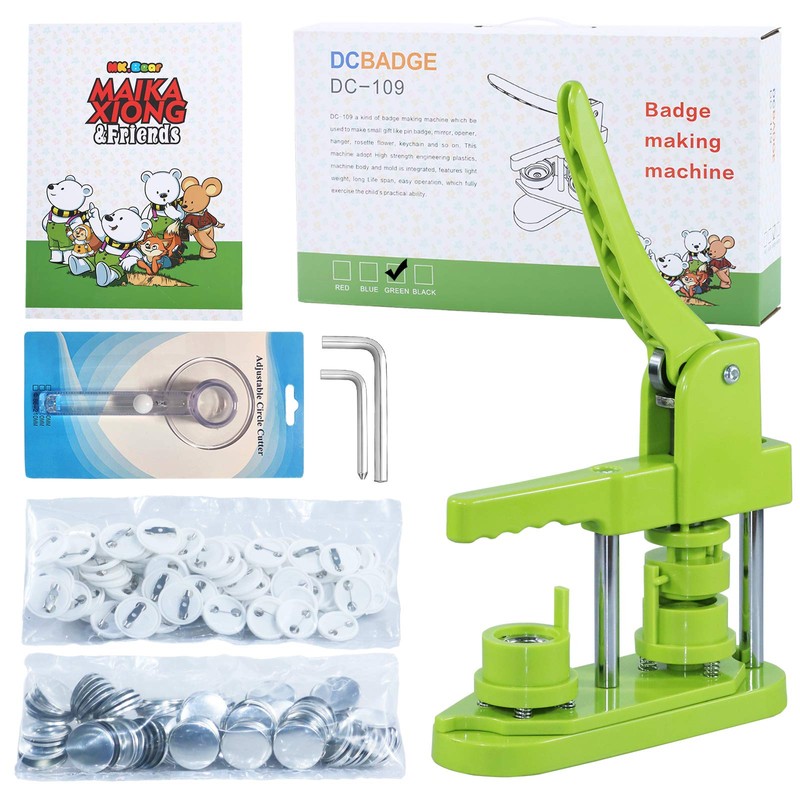 - 🎁 DIY BUTTON BADGE MAKING KIT INCLUDES - 25mm (1 in) Badge Maker,500pcs Button Parts, Circle Cutter,100pcs Pictures and a Magic Book.The button machine also can be given as a gift to children and those who love DIY.