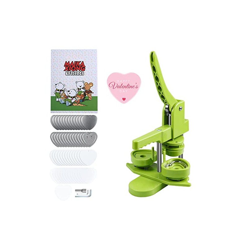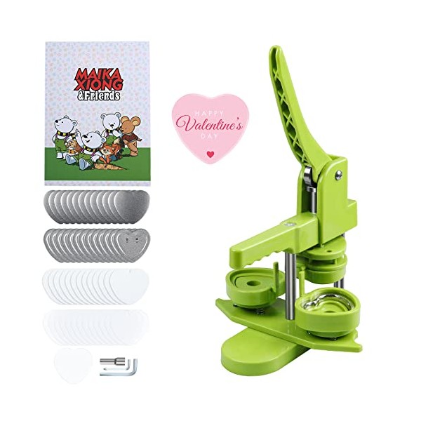 MK.Bear Heart Button Maker Machine DIY Gift, Installation-Free Button Maker Press Machine, Pin Button Making Machine with Free 100 Sets Heart Button Making Supplies & Circle Cutter & Magic Book(Green)