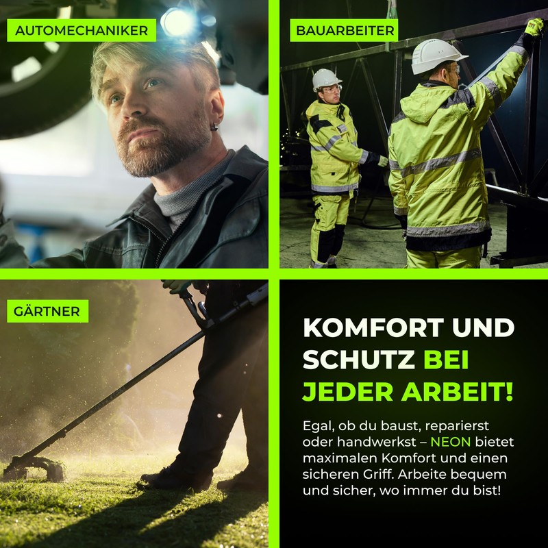 - HIGHLY VISIBLE NEON COLOR The intense neon color of the gloves ensures excellent visibility, even in low light conditions. This makes you more visible to other workers or machine operators, which increases your safety regardless of day or night time. The highly visible colour is an additional protective element that minimises the risk of accidents due to lack of visibility. These eye-catching safety gloves improve your visibility in the workplace