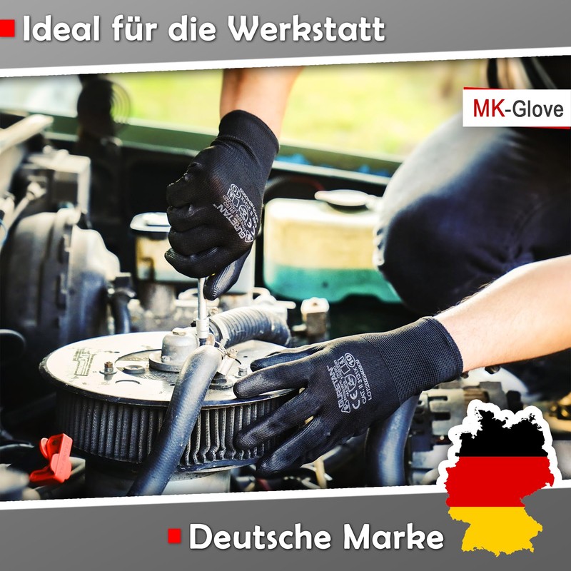 MK-Glove Work Gloves Made of Polyurethane Men (12 Pairs) - Precision Gloves for Mechanics - Breathable Protective Gloves with Good Feel - Assembly Gloves Workshop - Size 8-S