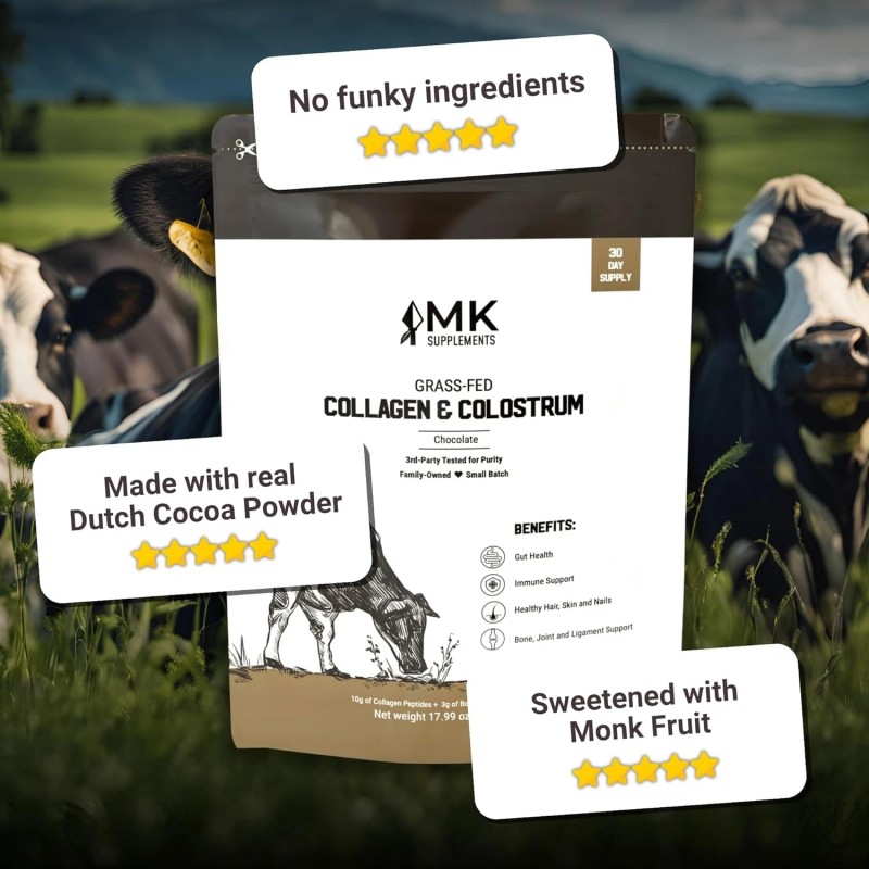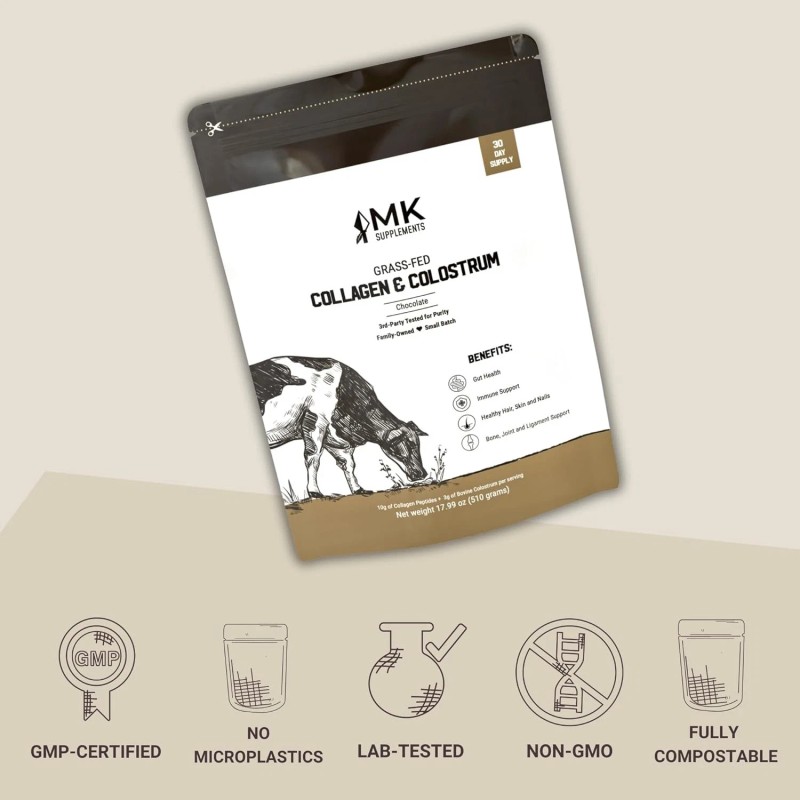 - MK Supplements Grass-Fed Collagen & Colostrum Supplement