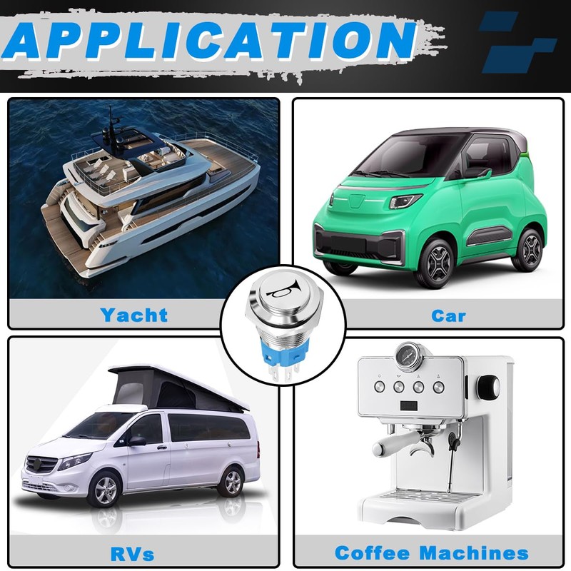 - 【Wide Application】Horn switches are widely used in motorcycles, electric vehicles, cars, RVs, ships, trucks, coffee machines, industrial equipment and medical equipment. Suitable for motor starting, power starting devices of almost any motor vehicle, and can also be used as access control buttons.