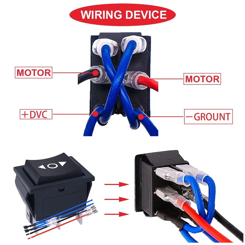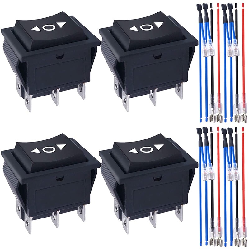 MKBKLLJY 4pcs DC 20A 12V Auto Lock Motor Polarity Reverse Rocker Switch, DPT 6 Pin ON-OFF-ON 3 Position Boat Motor Control Switch Toggle Switch 16A 250V AC/20A 125V AC/20A with Jumper Wire