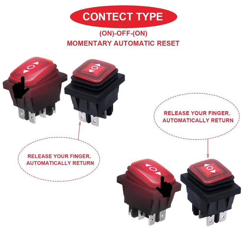 - (Only at 12 V, LED Lighting) This switch is a momentary, and when you release the toggle, it will return to the center off position. Release the switch, it will automatically reset to off