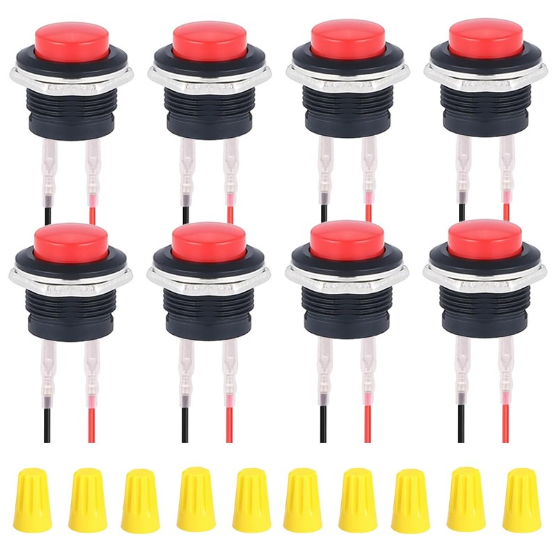 - PACKAGE CONTENT:8 x Red Momentary Button Switch;16 x Terminal Wires;16 × 2.8mm Insulating Sleeve;10 x Wiring cap.