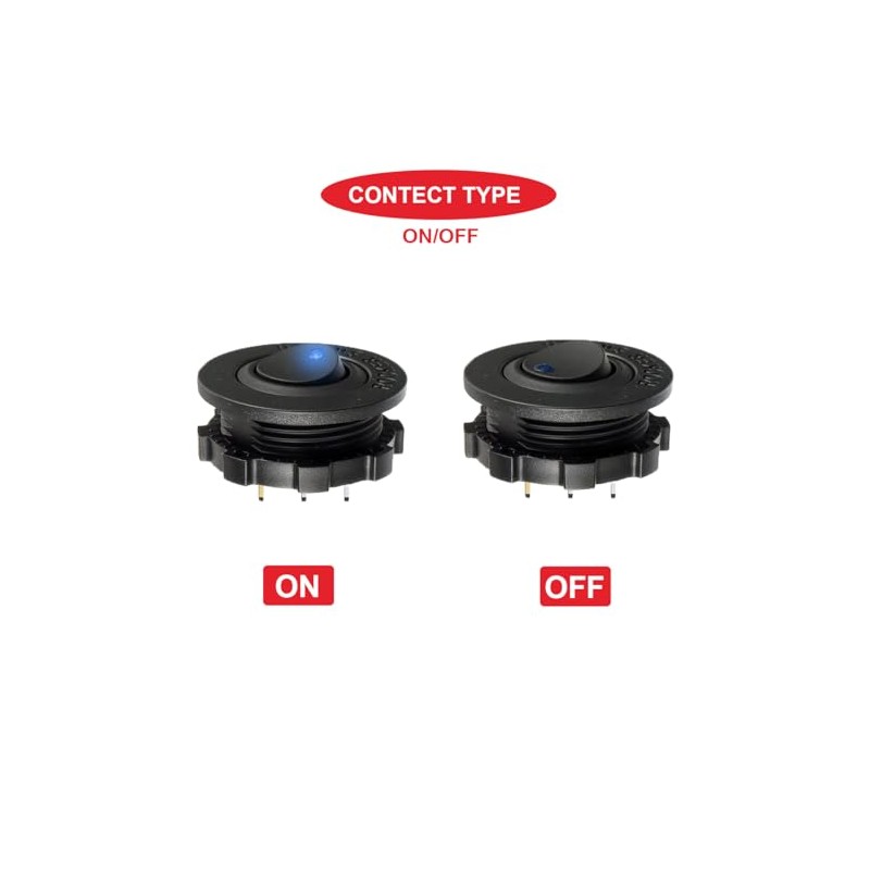 - PERFECT DESIGN:Designed to connect and disconnect a DC12V 20A electrical circuit at will, SPST: ON-OFF control; 2 pole design (On/Off), 3rd poles with LED to be connected to earth. Fluorescent lamps will be lighted up when the switch is turned on.