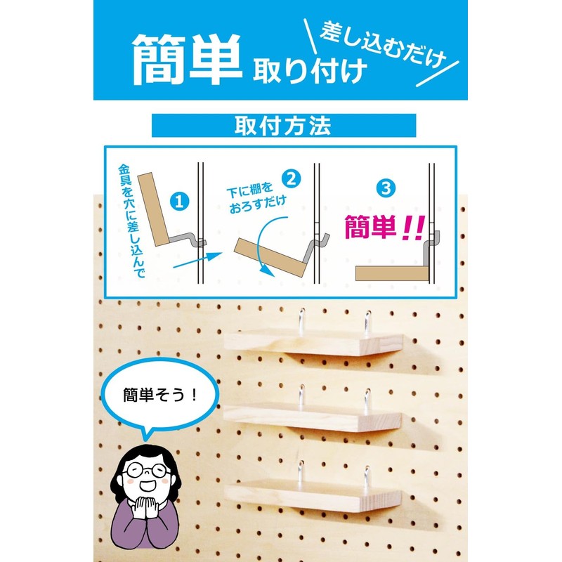 - Easy Installation: Just insert the hardware into the holes of the pegboard