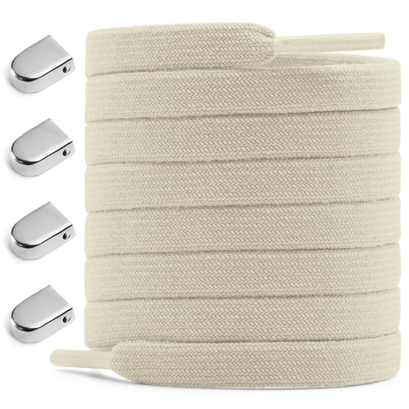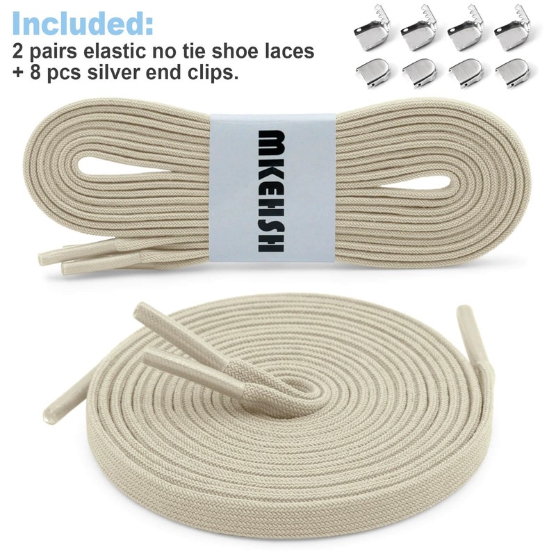 MKEHSH Tieless Elastic Shoe Laces for Sneakers: 47inch Beige Flat No Tie Shoelaces with End Clips