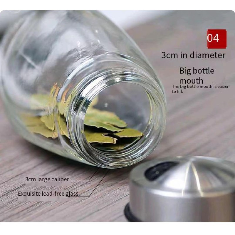 - 3 Opening Styles: The seasoning jar features three opening types with adjustable lids, allowing you to choose the perfect fit for your spice collection. These containers boast excellent airtightness and moisture-proof properties. The 1.25-inch (3.2cm) neck design lets you fill spices effortlessly without spilling. The transparent glass bottle also helps you quickly and accurately locate the spices you need