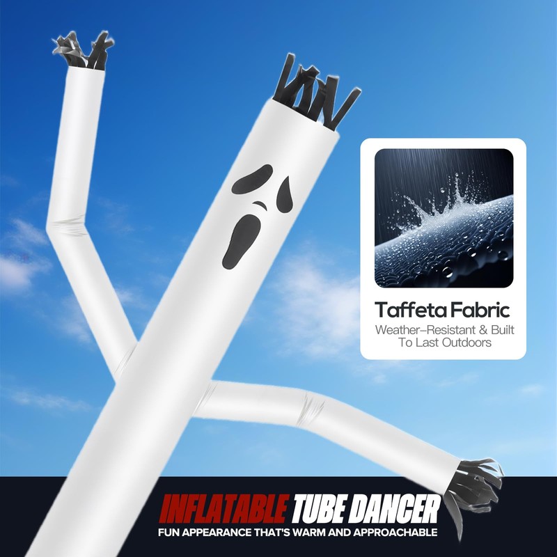 - STAND OUT GHOST AIR TUBE DANCER - 6ft dancer is easy to set up, with a built-in blower and LED light, with its standard outlet compatibility and sturdy construction.It's the perfect centerpiece for Halloween outdoor parties, BBQs, and tailgate celebrations.ATTENTION: The power cord is only 6 feet long. If the distance is too far, please use an additional power cord for connection.