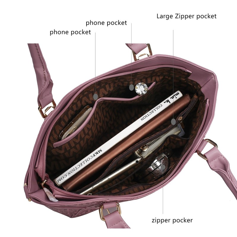 MKF Collection Signature Tote Bag for Women, Vegan Leather Handbag Purse, Crossbody Top-Handle Ladies Shoulder Bag Black by Mia k