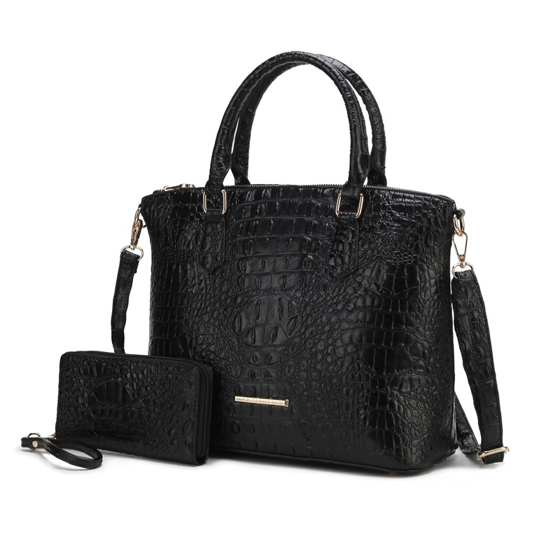 MKF Collection Tote Bag for Women & Wristlet Wallet Purse Set, Crocodile-Embossed Vegan Leather Top-Handle Handbag by Mia k