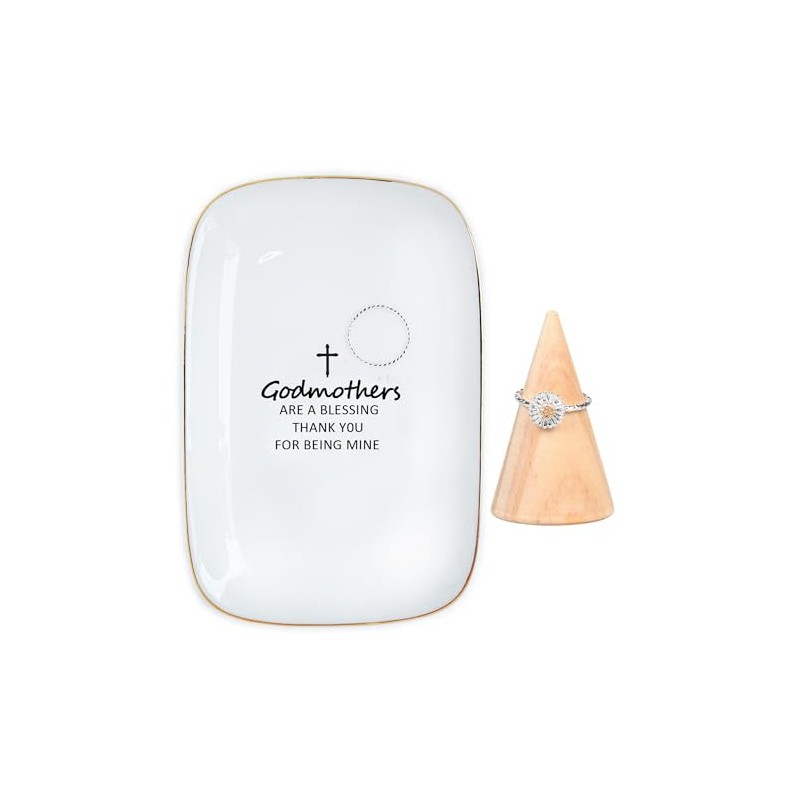 - Godmother Gift: Surprise your godmother with our personalized gift for godmother/godmom! Our Gift for Godmother comes with a ceramic jewelry dish and a Cone Shape Decorative Display Stand for a Jewelry Ring. It can be used as Christmas, Mother's Day, Birthday, Wedding, godmother proposal gift for godmother from godchild, to express your appreciation and best wishes.