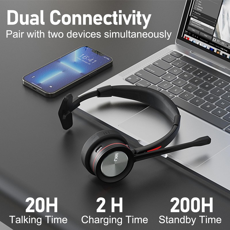 MKJ Wireless Headset with Microphone Noise Cancelling Call Center Home Office Wireless Headphone for Softphones Skype Teams Zoom Cisco Jabber Conference Calls Headset for Computer PC Laptop Mac