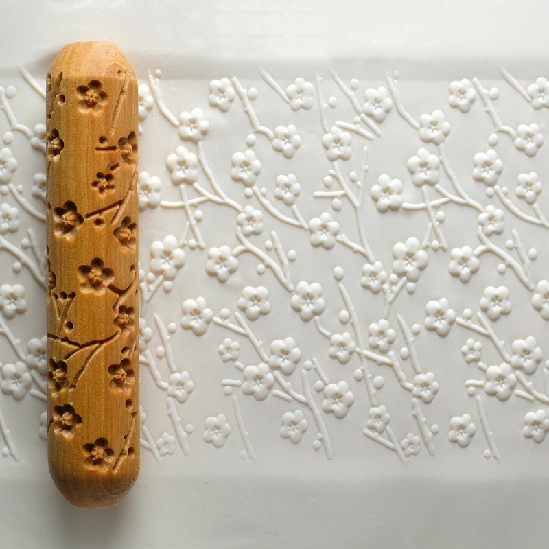 MKM Pottery Tools Wood Big Hand Rollers for Clay (BHR-159 Plum Blossoms)