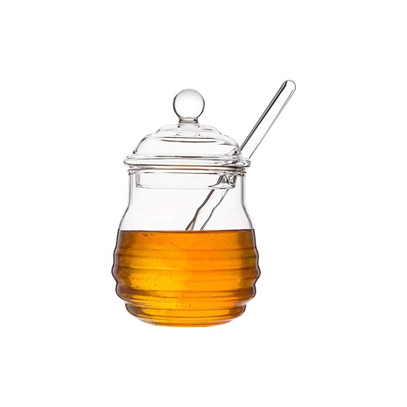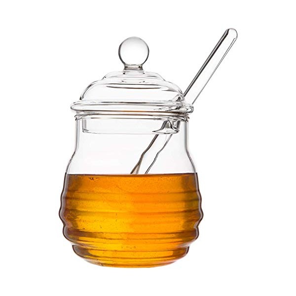 Mkouo Glass Honey Jar with Dipper Transparent Honey Pot 265 ml, 9 Ounces