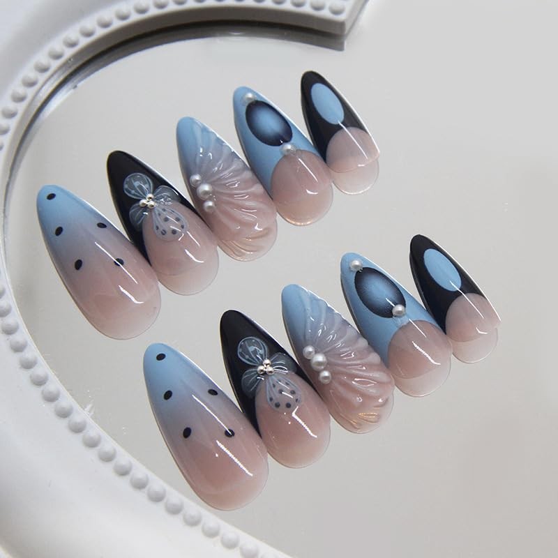 3. You can use other accessories to adhere to the fake nails to create your favorite style.