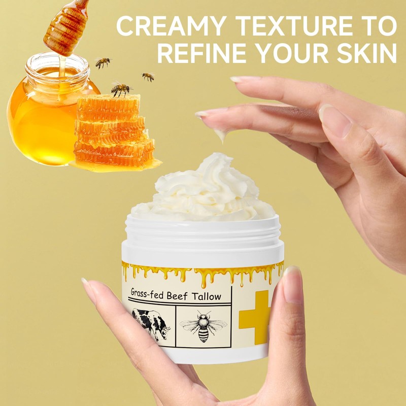 - 【Pure Honey】Beef tallow for skin nourishes and revitalizes your skin. This tallow face moisturizer stimulates cell renewal, repairs damaged tissues, enhances skin radiance, and offers potent antioxidant benefits, safeguarding your skin from free radicals and reducing signs of aging. Additionally, beef tallow for skin aids in moisture retention, making it an exceptional choice for skin types.