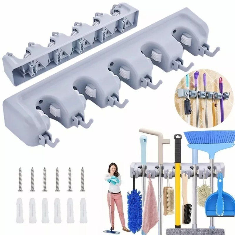 ML Organizador Con Trapeadores Y 5 Espacios Para Colgar Escobas