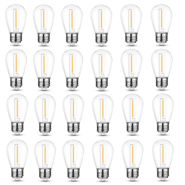 - 2 Year Warranty Satisfaction Guaranteed : Please screw the string light bulbs into socket tightly or the bulbs won't work. Our package contains 24 pack S14 LED bulbs with E26 Medium base. We promise you'll love our Edison bulbs. Any question arises, please feel free to reach us, we would arrange the replacement string light bulbs or refund asap.