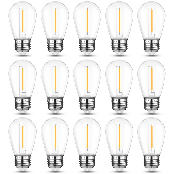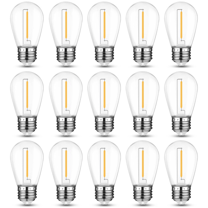 • 2 Year warranty satisfaction guaranteed : Please screw the string light bulbs into socket tightly or the bulbs won't work. Our package contains 15 pack S14 LED bulbs with E26 Medium base. We promise you'll love our Edison bulbs. Any question arises, please feel free to reach us, we would arrange the replacement string light bulbs or refund asap.