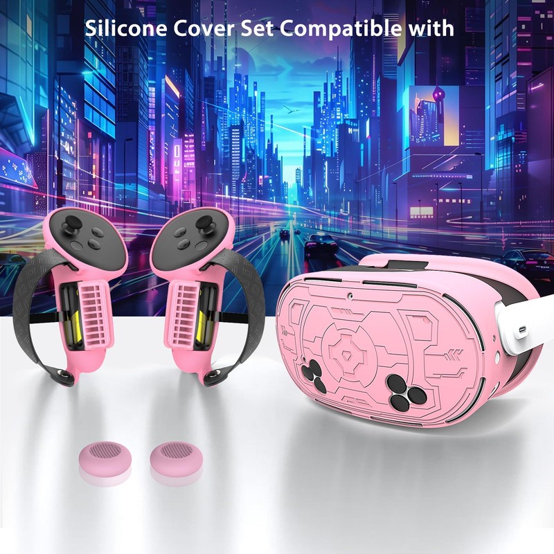 MLemonVR Silicone Cover Set for Meta Quest 3s Accessories Included Battery Opening Controller Grips TPU VR Shell Cover Silicone Face Cover Lens Cover Accessories Set for Quest 3s, Pink