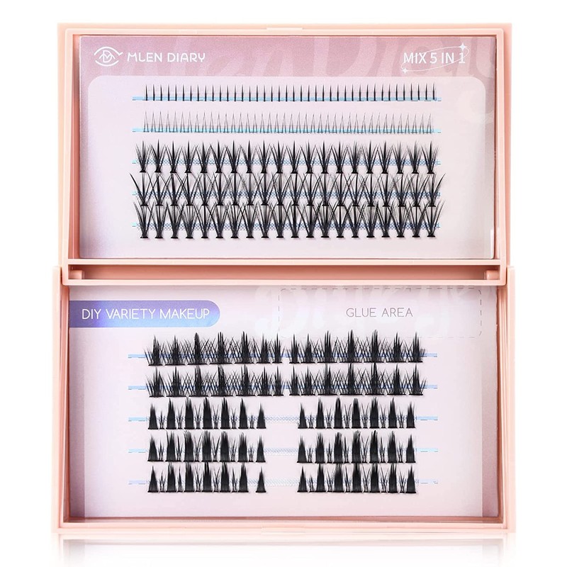 MLEN DIARY Individual Eyelashes, Pack of 246 Lash Clusters Eyelash Extensions, False Eyelashes, 5 Types, DIY Cluster Lashes, Reusable Eyelash Extensions for Beginners (Mix 9 Lengths)