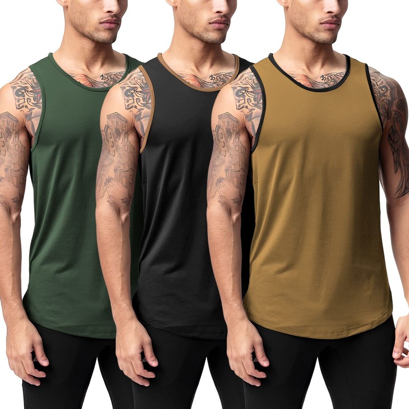 Mlgaril 3Pack Men's Althletic Quick Dry Gym Muscle Lightweight Tank Top Workout Sleeveless Shirt Bodybuilding Compression Fitness Stringer Jersey,Green/Black/Brown,2XL