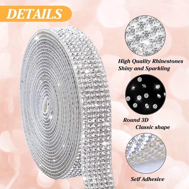 • Quality Bling Rhinestone: Self adhesive crystal rhinestone ribbon diamond roll is made of quality rhinestones and self-adhesive paper, three-dimensional crystal, more shining in the light, beautiful and charming