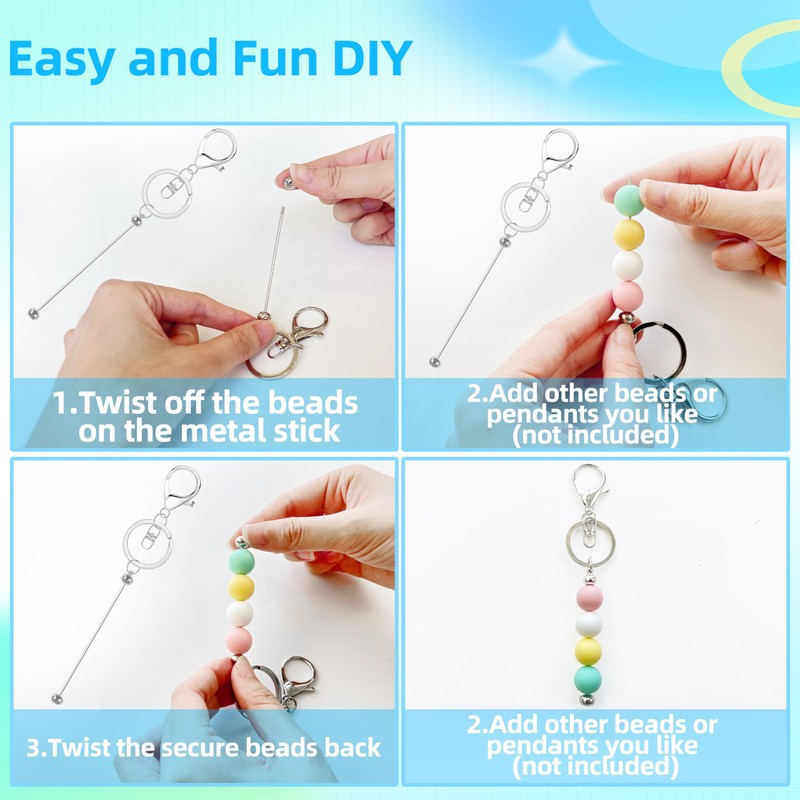 - 【High quality and exquisiteur】 keychain bars for beads are crafted from quality metal,electroplated colos, sturdy enough and rust resistant, providing unparalleled durability to withstand daily use and last for years to come; The beads on the metal rod are also very strong, not come loose easily.These unique keychains are sleek and stylish look, these exceptional keychains can add a touch of elegance to your keys, bags, or zipper pulls