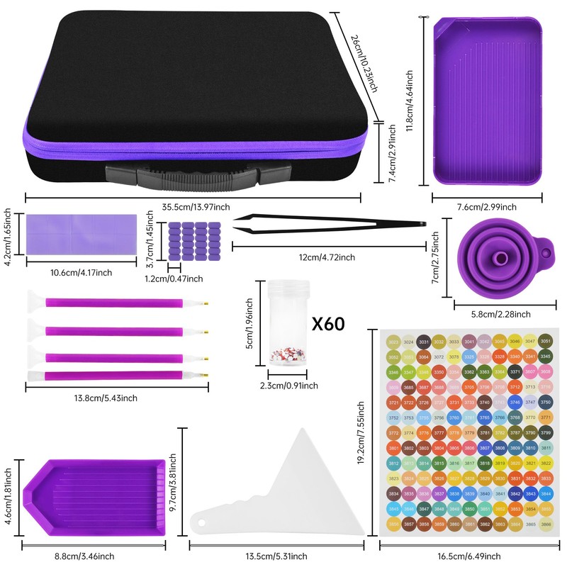 - 【Clear color code stickers & Practical Tool】Diamond painting accessories,Coming with 4 diamond painting pens,2 different size trays and wax are also included.Within which a foldable silicone funnel is for your convenience to carry and store, and to fill diamonds safer and easier without spilling out.and a mesh pocket large enough to store your diamond painting accessories tools.
