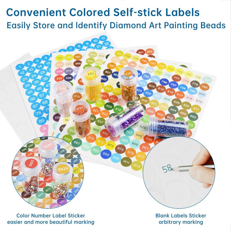 - 【Clearly labeled for bead organizers and storage】80 bottles come with a foam base perfectly helps organizing all your drills, Each diamond painting storage container can hold approx 10 grams of objects, you can turn each jar into bead organizer or store other little objects such as jewelry, seeds, and other small pieces; Four Diamond painting stickers of 572 pcs label help you organizing and finding your diamonds with nmuber or color code much easier.