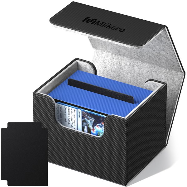 Mlikero Card Deck Box, Commander Deck Box Holds 100+ Double-Sleeved Cards with 4 Dividers, Leather Magnetic Closure Card Box Fit for MTG, TCG (Black)