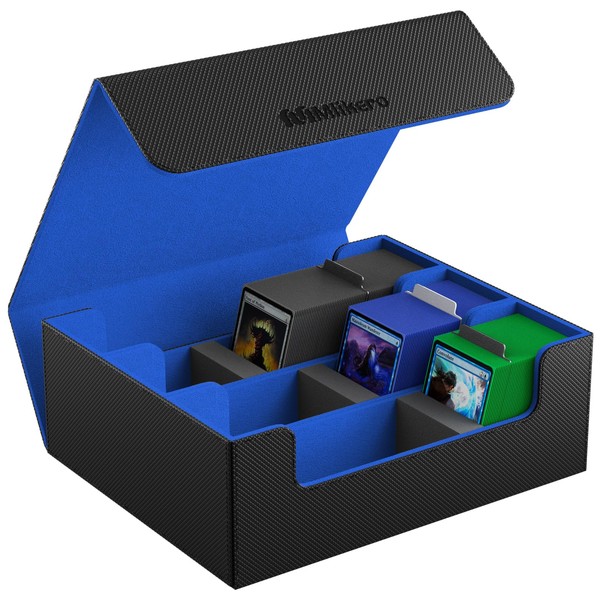 Mlikero Sammelkarten-Aufbewahrungsbox für 1800+ Karten, Magnetische Karten Deck-Box passend für MTG und Sports Karten, Premium Commander Karten Deck-Box mit 10 kompatiblen Kartenteilern (Schwarz&Blau)