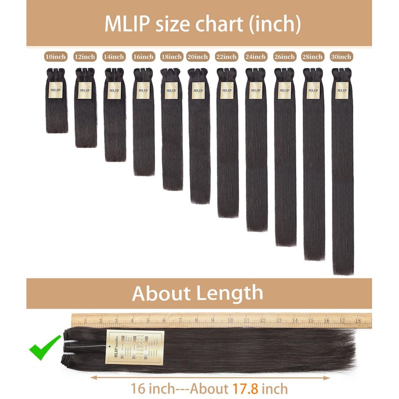 MLIP Raw Bundles Human Hair Straight, No Tangle Shedding, Keep Texture Silky Soft After Multiple Washes, 15A Raw Indian Hair Bundles 16 16 16 Inches, Triple Lifespan 3X
