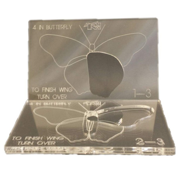 4" BUTTERFLY Template set creates A 4x7 inch inlay and contains 3 clear Acrylic plates.Our Multiple Layer Inlay Stencils enable you to create complex inlay designs by simply following along the cutouts on each numbered template included in each (MLIS) set. Using a plunge router with an installed router inlay kit simply remove the collar or ring from the inlay kit to cut out your inlay piece, and then re-attach the collar and use that same template to create the pocket for that piece to be inserted into. Make a statement with your woodwork by incorporating an impressive inlay into your finished piece using Multiple Layer Inlay Stencils