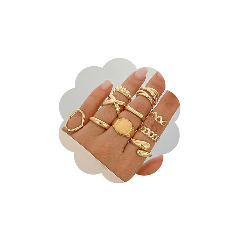 - Bold Statement Rings Set with 10 Unique Designs:Including twisted bands, dome rings, and croissant shapes. Mix-match textures bring edgy sophistication to casual outfits and formal events.